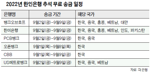 민족 최대 명절인 추석(9월 10일)이 한 달 정도 남은 가운데 올해도 한인은행들은 ‘추석 무료 송금 서비스’를 한다.