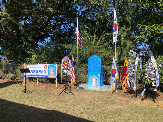 미동남부월남참전유공자회(회장 여봉현)가 참전용사들의 묫자리를 마련한 둘루스플레전트힐 선상 화이트 채플 메모리얼 가든 공동묘지에 설치할 충혼비의 기공식을 26일 개최했다.