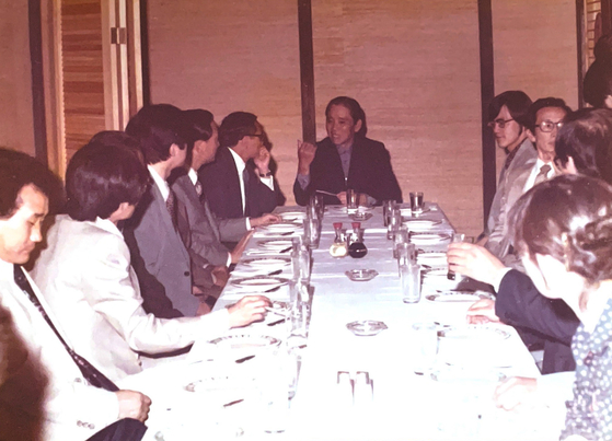 1979년 시카고 중앙일보 창간 후 시카고를 찾아 직원들과 대화 중인 홍진기 당시 회장. 홍 회장 오른쪽으로 당시 미국 유학 중이던 홍석현 전 회장과 홍두영 전 대표가 차례로 앉아 있다.