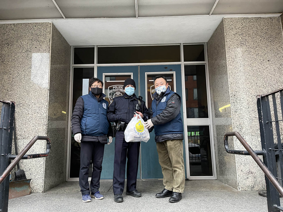 한국외국어대학교 G-CEO(E-MBA) 뉴욕총원우회 이현탁 회장은 3일 오전 7시 새해 첫 번째 아침 무료급식 행사를 진행했다. 플러싱 산수갑산1 앞에서 실시된 이번 행사에서 뉴욕총원우회는 지역 주민들에게 300인분의 베이글과 커피를 제공했다. 109경찰서에도 30명분의 베이글과 커피를 전달했다. [한국외국어대학교 G-CEO 뉴욕총원우회]