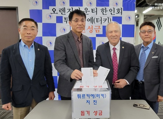 애너하임에 있는 섬김의 교회 박승우 담임목사와 서준석 장로는 지난 10일 가든그로브의 OC한인회관에서 대지진으로 큰 어려움을 겪고 있는 튀르키예, 시리아의 이재민 돕기에 써달라며 500달러의 성금을 기부했다.