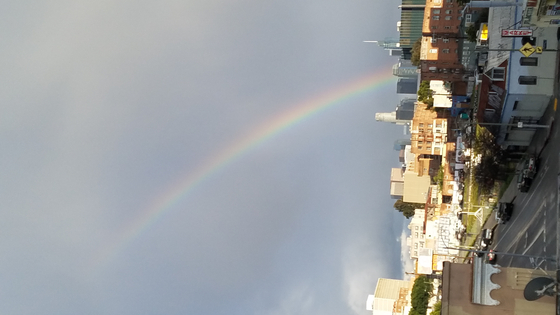 겨울 폭풍이 다가오면서 모두들 몸도 마음도 움츠러드는데 잠시 열린 밝은 하늘 속에서 무지개가 피어났습니다.