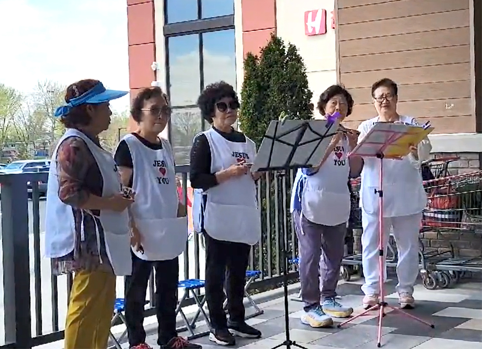 하모니카 연주를 통해 선교활동을 하고 있는 샬롬하모니카선교회(대표 이규석 목사) 회원들은 지난 15일(토) 뉴저지주 대표적인 한인 슈퍼마켓인 리틀페리 H마트 앞에서 찬송가와 성가 등을 연주하는 전도 찬양 행사를 가졌다. [샬롬하모니카선교회]