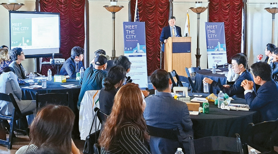 LA한인상공회의소(이하 LA상의)가 주최한 밋더시티 행사에 한인 상공인 100여 명이 참석하며 높은 관심을 보였다.