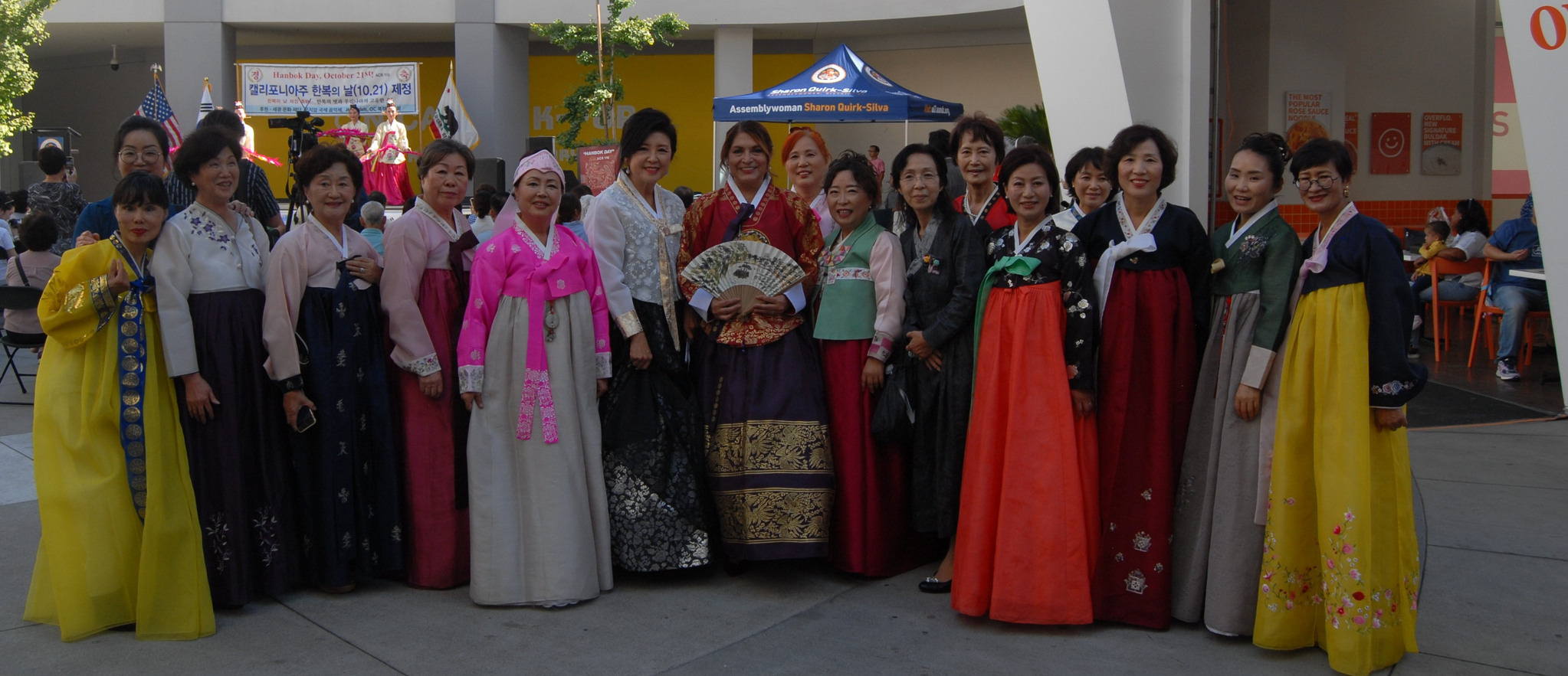 ‘가주 한복의 날’ 행사 성황 가주 한복의 날 제정 결의안의 가주 하원 통과 축하 행사가 지난 21일 오렌지카운티 부에나파크 더 소스 몰에서 열렸다. 이날 행사에 참석한 섀런 쿼크-실바 가주 67지구 하원의원은 “한복은 한국의 깊은 역사와 전통을 대변하는 아름다운 의복으로 명절마다 한인들이 즐겨 입는다”며 “한복의 날은 미국의 다양성을 뽐내는 매우 상징적인 날이 될 것”이라고 밝혔다. 행사 이후 쿼크-실바(가운데) 하원의원을 포함한 관계자들이 기념 촬영을 했다.
