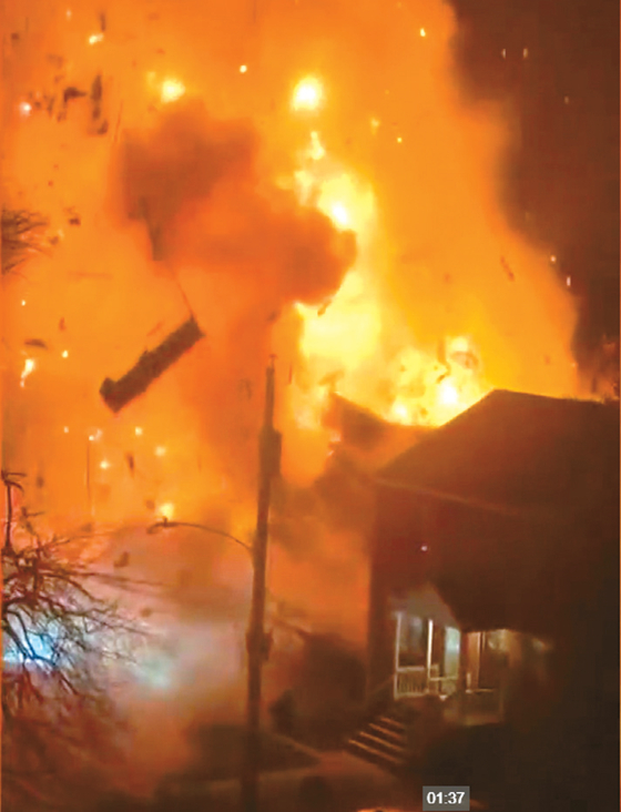 이어 오후 8시 25분쯤 엄청난 굉음과 함께 집이 폭발하면서 산산이 부서졌다. 이로인해 큰 화염이 일어났고 인근에 있던 경찰 3명이 경미한 부상을 입었다. 이웃 주민인 밥 메인스는 “거실에서 TV를 보는 도중 마치 지진처럼 집 전체가 울렸다”고 당시 상황을 전했다.