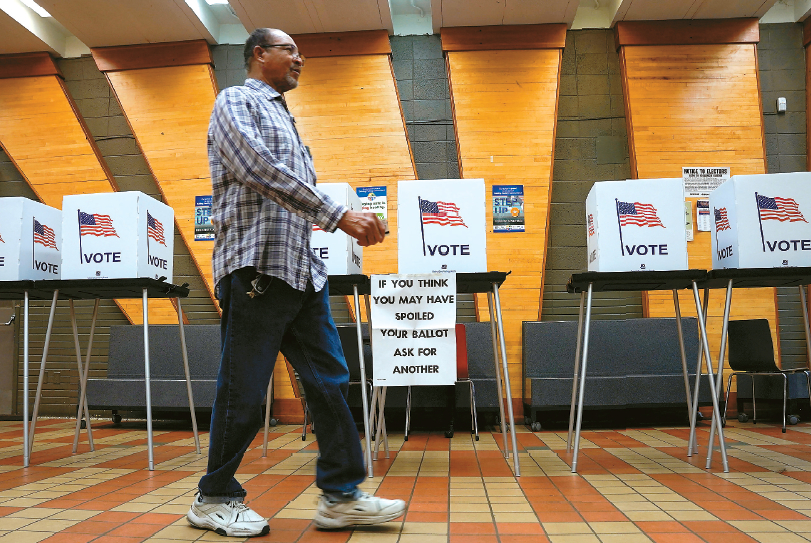 오늘(5일) 수퍼화요일 선거가 15개 주에서 일제히 실시된다. 사진은 지난달에 열렸던 미시간주 예비선거 모습. [로이터]