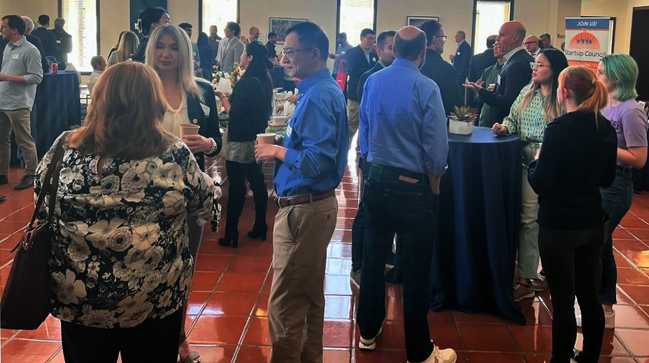 어바인 테크 위크 리소스 페어 참가자들이 인적 네트워크를 만들기 위해 대화하고 있다. [어바인 시 제공]