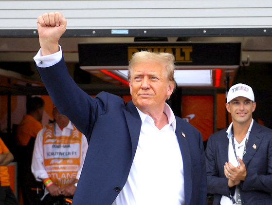 도널드 트럼프 전 대통령은 대선에 당선되면 2000만 명 정도로 추정되는 서류미비자들을 대거 국외로 추방시키는 정책을 추진할 가능성이 높은 것으로 나타났다. 사진은 5일 트럼프 전 대통령이 마이애미 그랑프리에 참석해 지지자들의 환호에 답하는 모습. [로이터]