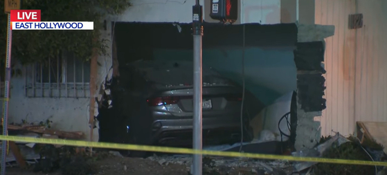 LA경찰국(LAPD)은 남쪽으로 주행 중이던 세단 차량이 좌회전을 시도하다가 통제력을 잃고 아파트 건물을 들이받았다고 밝혔다. 차량은 벽을 뚫고 아파트 내부로 돌진한 후에야 멈췄다.
