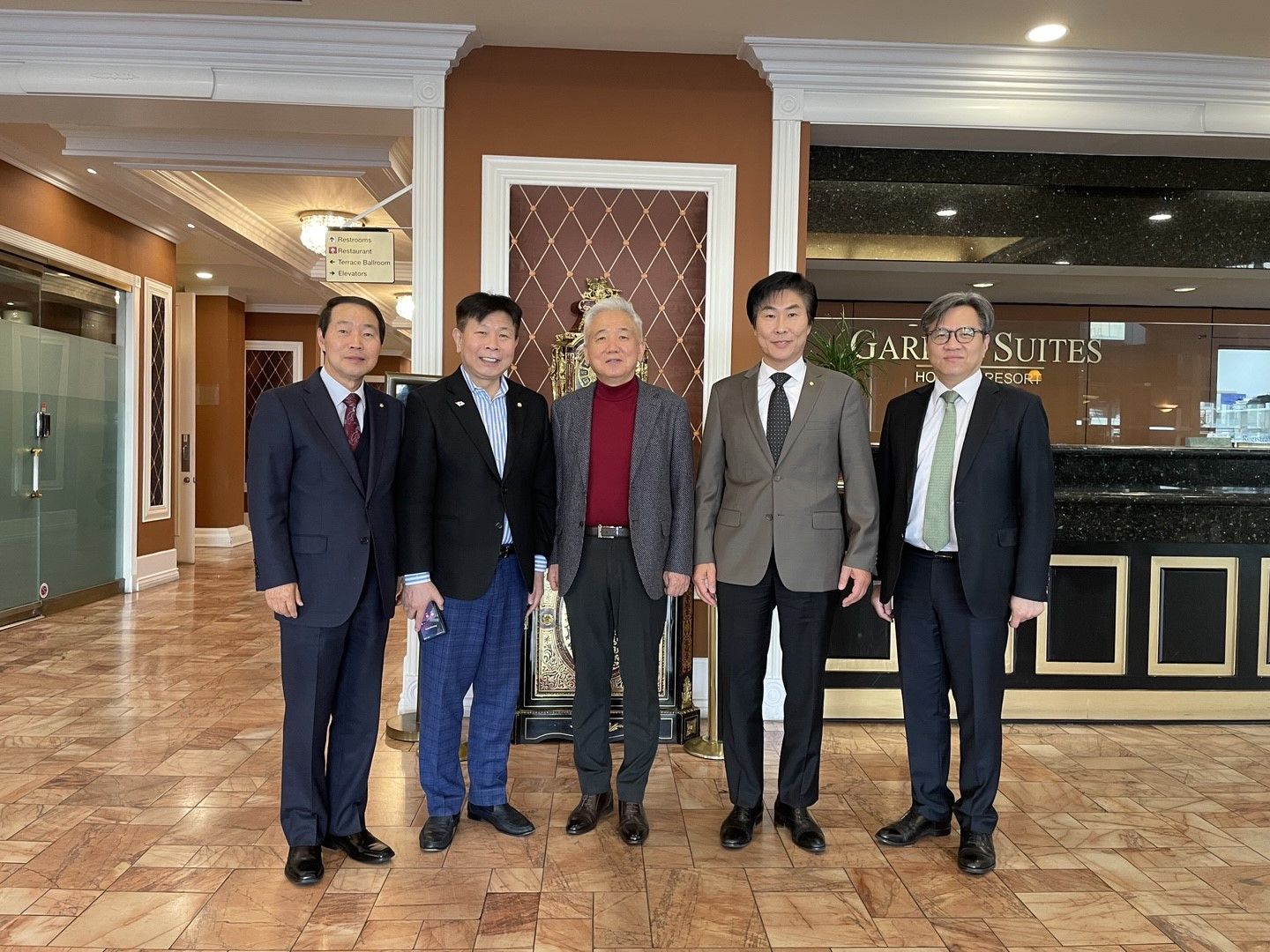 민주평화통일자문회의 LA협의회(회장 이용태)가 지난 3일 LA를 방문한 이상덕 재외동포청장과 차담회를 가졌다. 이날 모임에서는 LA한인사회 주요 현황, 세계한인비즈니스대회 준비 등에 관해 의견을 교환했다. 이용태(왼쪽에서 두 번째) 회장과 이상덕(세 번째) 재외동포청장이 기념촬영을 하고 있다.