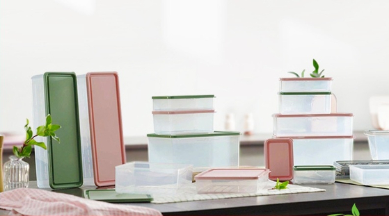 무엇보다 직사각형의 다양한 사이즈로 구성되어 있어 내용물의 양이나 부피에 따라 자유롭게 선택할 수 있다. 다른 용량이라도 뚜껑의 사이즈가 같고 뚜껑에 홈이 있어 사이즈별로 적층이 가능해 정리에 최적화되어 있다.