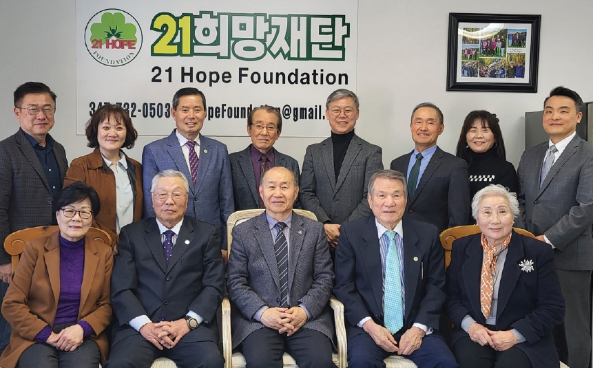 지난 18일 21희망재단을 방문한 글로벌 선진학교 설립자 남진석 목사(앞줄 가운데). 김준택 이사장, 이신구 목사, 변종덕 명예이사장 등도 자리를 함께했다. [사진 21희망재단]