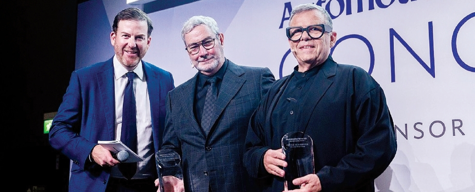 현대차그룹은 지난 11일부터 12일까지 이탈리아 토리노에서 열린 ‘오토모티브 뉴스 100주년 기념 어워즈’에서 현대차그룹의 최고디자인책임자(CDO)인 루크 동커볼케 사장과 브랜드 앰버서더인 피터 슈라이어 전 사장이 ‘100주년 기념상’을 수상했다고 최근 밝혔다. 이들은 현대차와 기아, 제네시스를 브랜드별로 차별화해 혁신적 디자인을 선보였다는 평가를 받았다. (왼쪽부터) 오토모티브 뉴스의 KC 크레인 최고경영자(CEO), 동커볼케 사장, 슈라이어 전 사장이 기념사진을 촬영하고 있다.