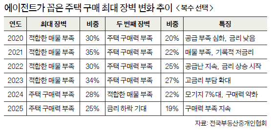 올해 조사에서도 '구매력 부족'은 '적합한 매물 부족'을 제치고 주택 구매의 최대 장벽으로 꼽혔다.