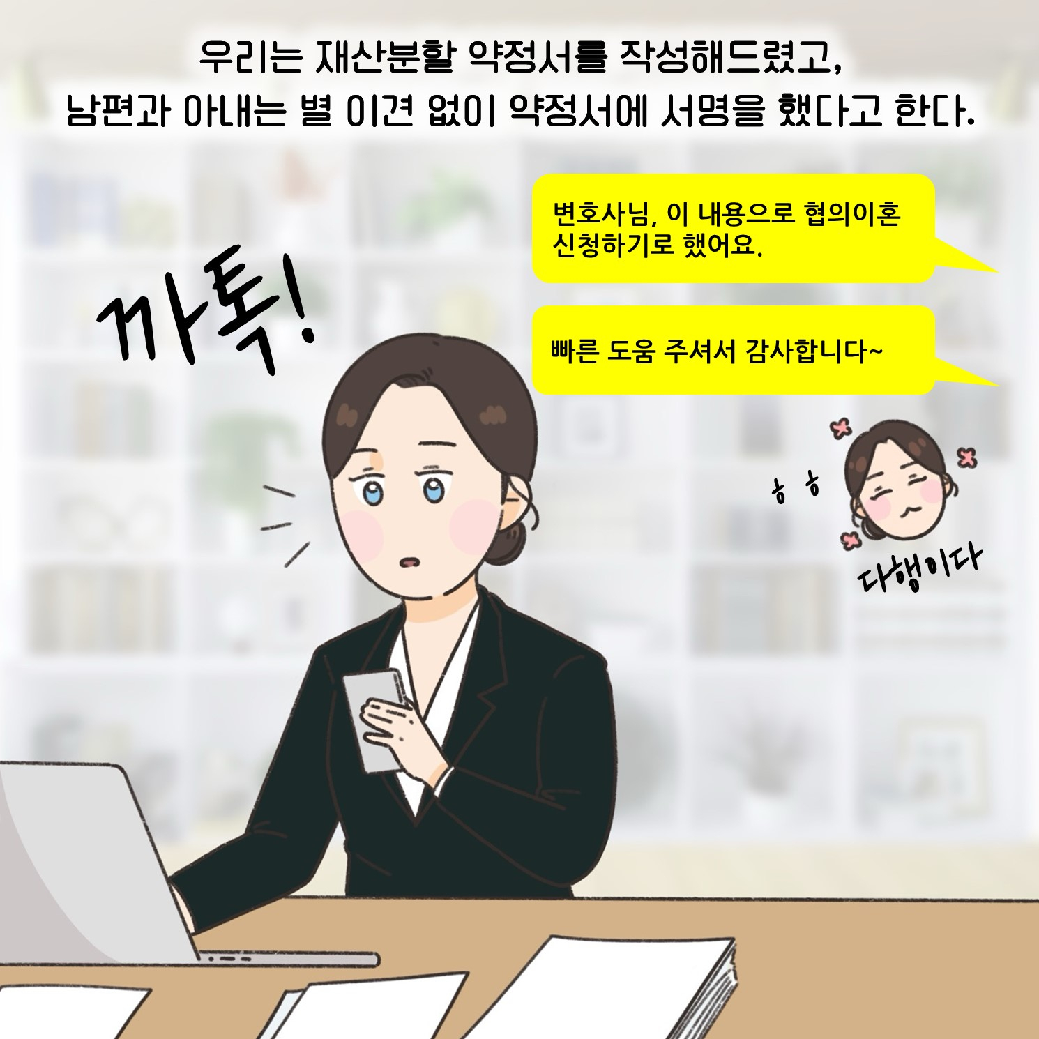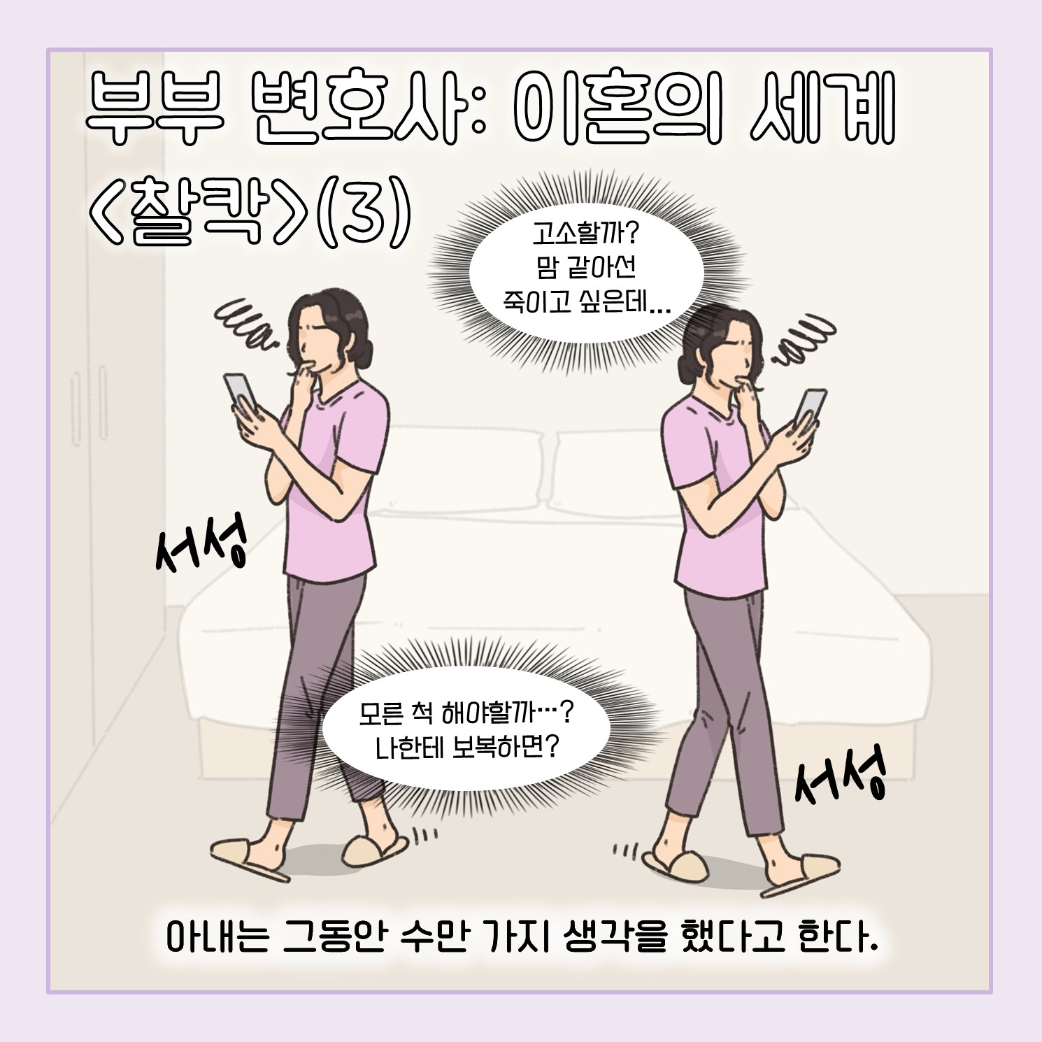 (※이 기사는 이혼 소송 과정에서 필요한 법률 지식을 웹툰 형식으로 이해하기 쉽게 제공할 목적으로 제작됐습니다. 실제 사례를 각색한 내용으로 언급되는 이름과 지명 등이 실제와 같은 경우가 있더라도 이는 우연에 의한 것임을 밝힙니다.)