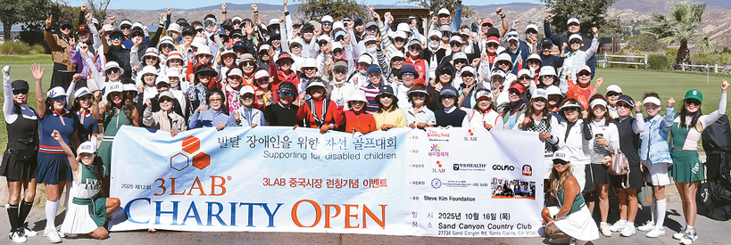 발달장애인 지원을 위한 ‘3LAB우먼스 오픈 골프대회’가 16일 샌드캐년 컨트리클럽에서 성황리에 열렸다. 올해 12회를 맞은 대회는 중앙일보 산하 비영리단체 해피빌리지가 주최하고 세계적인 여성 화장품 기업 3LAB이 타이틀 스폰서를 맡았다. 또 영신건강과 정관장, Golfio 등이 후원사로 참여했다. 참가자들이 경기 시작 전 화이팅을 외치고 있다. [김상동 남가주사진작가협회 회장 제공]