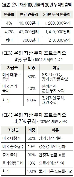 윌리엄스 이사도 "4% 규칙은 시작점으로는 유용하다"면서도 "현대의 은퇴 계획은 해마다 삶의 변화, 투자 수익률, 물가 상승률 등을 반영해 조정해야 하는 살아 있는 문서와 같다"고 강조했다.