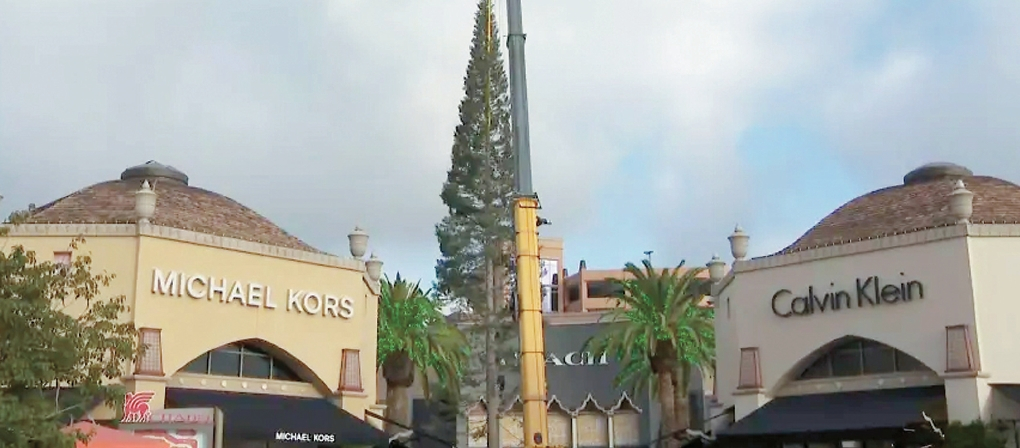 22일 커머스의 시타델 아웃렛에서 세계 최대 규모(115피트)의 생나무 크리스마스트리가 대형 크레인을 이용해 세워지고 있다. 트리는 북가주 샤스타산 지역에서 벌목된 흰 전나무로, 오는 11월 8일 트리 점등식과 함께 공식 공개된다. 완성된 트리에는 1만8000개의 조명과 1만개의 리본과 장식이 달릴 예정이다.