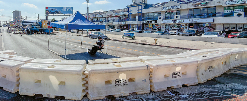24~26일까지 열리는 ‘올림픽 핼러윈 카니발’을 앞둔 23일, LA 한인타운 버몬트 애비뉴의 올림픽과 피코 불러바드 사이 구간이 차량 통제로 막혀 있다. 오늘(24일)부터 축제가 끝나는 26일까지 해당 구간의 교통이 전면 통제되면서 인근 도로의 교통 혼잡이 예상된다. 이로 인해 업주들은 영업 차질을 우려하고 있다. 김상진 기자