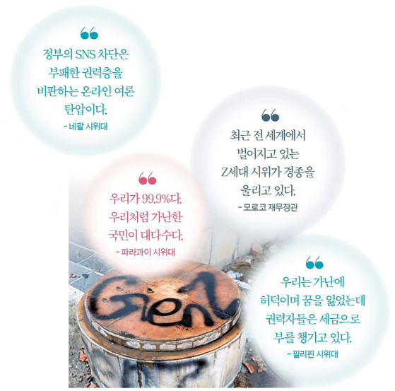 일본 만화 ‘원피스’에 나오는 해적기가 세계 곳곳의 시위 현장에 등장해 주목을 받고 있다. 해골이 밀짚모자를 쓴 그림을 담은 깃발이다. 이 해적기가 처음 관심을 끌게 된 지난 8월 17일 인도네시아 독립기념일 시위 때였다. 정부는 이날 국기 게양을 독려했지만 곳곳에선 이 해적기가 내걸렸다. 정부에 대한 저항의 표시였다. 마다가스카르 시위대는 원본 해적기의 밀짚모자 대신 자신들의 전통 모자를 씌운 그림의 깃발을 선보였다.
