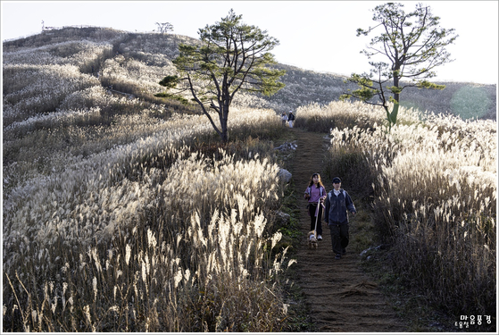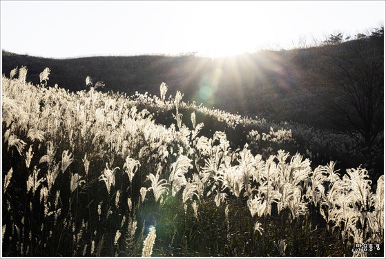 정선 민둥산 은빛 억새 축제가 15일까지 열린다. 억새꽃을 역광으로 촬영해야 반짝이는 은빛으로 표현된다. 렌즈 24~240mm, iso 125, f5.6, 1/80초.