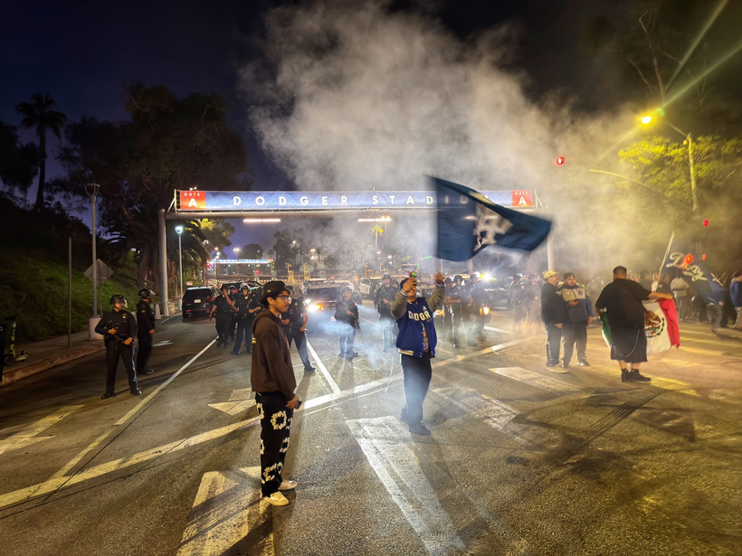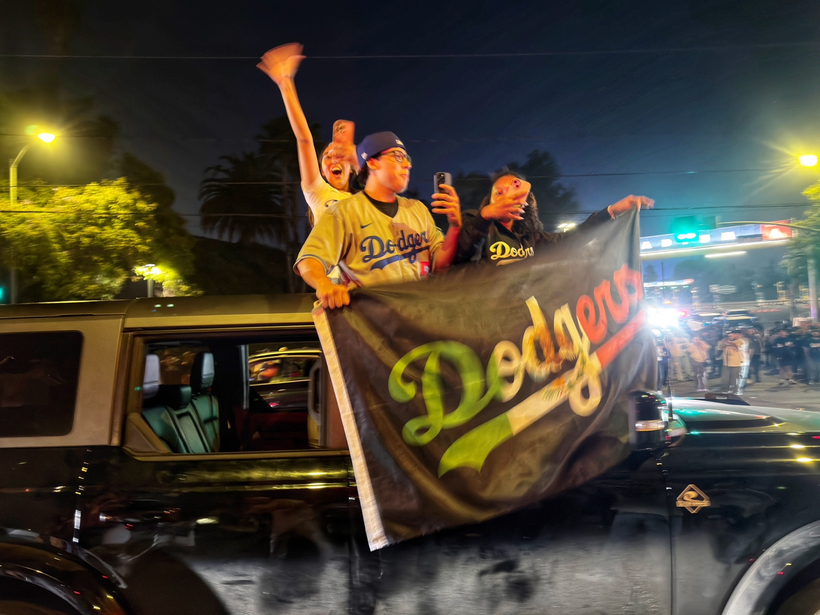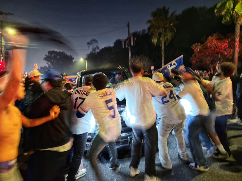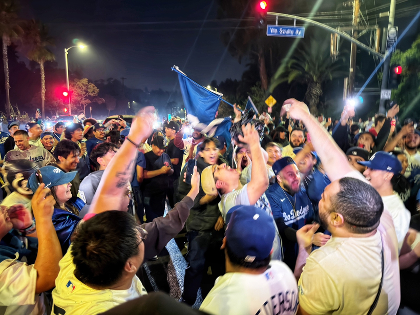 특히 다저스 홈구장인 다저 스타디움 앞에는 약 4000여 명의 팬들이 운집해 승리를 자축했다. “렛츠 고 다저스(Let's go Dodgers!)” 구호가 끊이지 않는 가운데, LA경찰국(LAPD)은 스타디움 정문을 중심으로 경관들을 배치해 질서 유지를 시도했다. 그러나 인파가 점점 늘어나자 오후 11시쯤 추가 인력을 투입해 해산 명령을 내렸다.