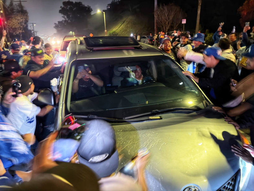 다저스는 캐나다 온타리오주 토론토의 로저스센터에서 펼쳐진 WS 7차전에서 토론토 블루제이스를 꺾고 우승을 확정 지었다. 원정 경기였음에도 불구하고 LA 시민들은 마치 홈구장에서 승리를 거둔 듯 거리로 쏟아져 나와 기쁨을 만끽했다. 차량에 다저스 깃발을 달고 질주하는 행렬이 이어졌고, 곳곳에서 폭죽이 터지며 밤하늘을 수놓았다.