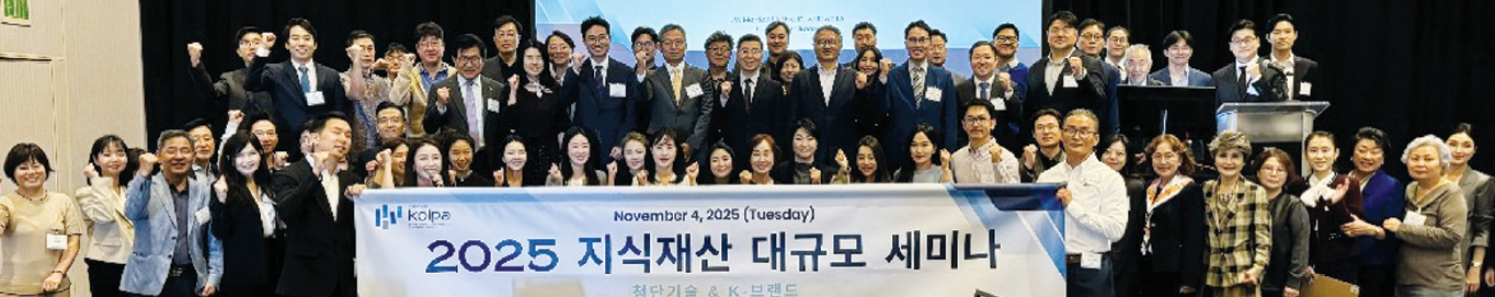 한국지식재산보호원(KOIPA) LA IP센터(센터장 지은정)가 LA총영사관과 공동으로 지난 4일 JW 매리엇 LA에서 ‘2025 지식재산 대규모 세미나’를 개최했다. 업계 관계자, 법률 전문가, 기업 담당자 등 130여 명이 참석한 이날 행사에서 지식재산 전문가와 실무진들은 ‘IP로 투자하는 미래’를 주제로 미국 내 동향과 실무 대응 전략을 공유했다. 세미나 종료 후 기념 촬영에 나선 참가자들.