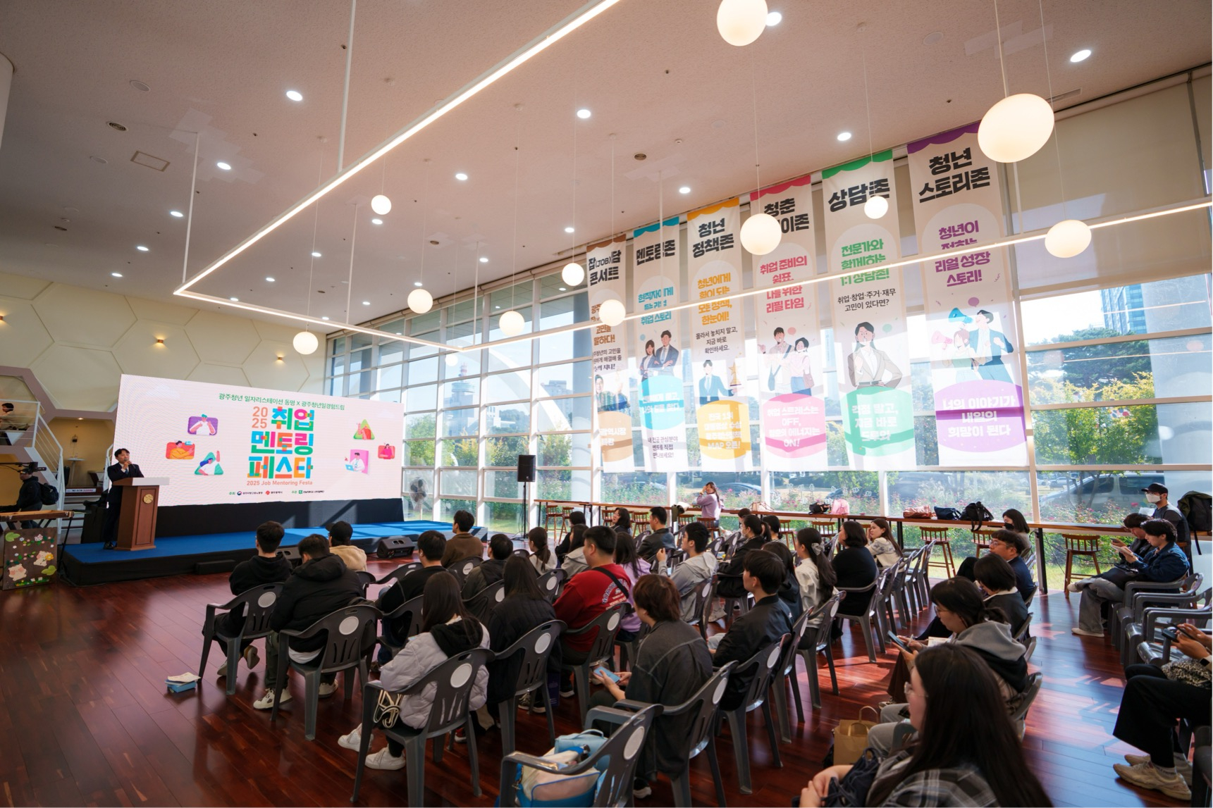 이 밖에도 ▲진로타로·퍼스널컬러·소원팔찌 체험이 가능한 ‘청춘 플레이존’, ▲광주 대표 청년정책을 소개하는 ‘청년정책 ZONE’, ▲재무·주거·일자리·창업 등 분야별 맞춤형 상담을 제공한 ‘상담 ZONE’등이 운영되어 청년들에게 실질적인 도움을 제공했다.