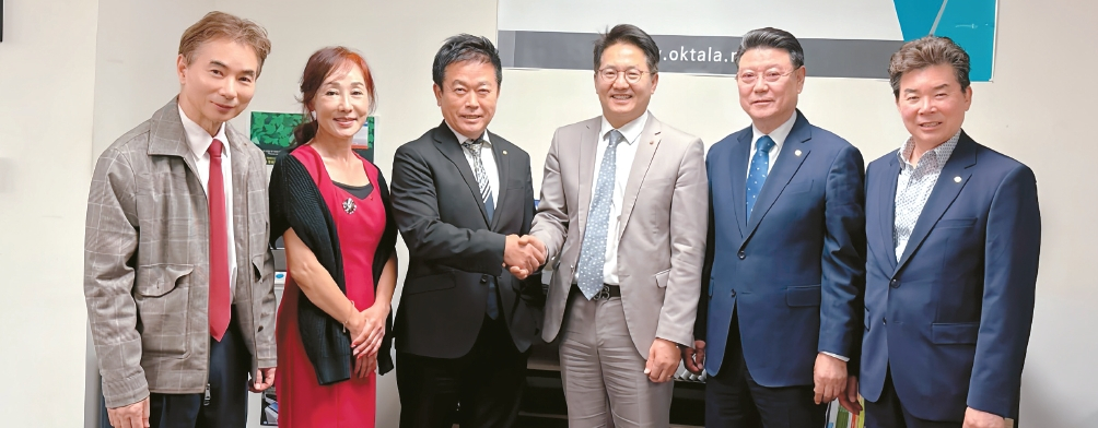 세계한인무역협회 LA지회(옥타LA·회장 정병모)는 오는 19일 정기이사회에서 제26대 회장 선거를 실시한다. 김창주 현 이사장과 24대 이사장인 이교식 고문이 후보로 나선다. 선거를 앞두고 관계자들이 한자리에 모였다. (왼쪽부터) 정병모 회장, 최앤 고문(선관위원), 이교식 후보, 김창주 후보, 민병호 제19대 회장(선관위원장), 김산춘 이사(선관위원).
