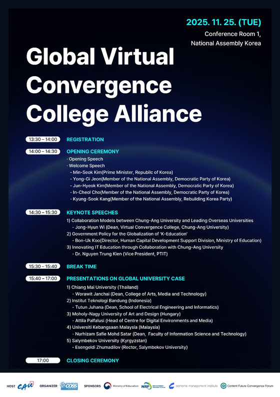 위정현 중앙대 가상융합대학 학장은 “한국은 IT와 콘텐츠 분야에서 강한 경쟁력을 보유하고 있으며, 이에 기반한 융합 교육은 글로벌 대학의 관심이 가장 높은 분야”라며, “실감미디어, AI 기반 K-교육 모델을 체계적으로 확산해 한국이 미래 고등교육 혁신을 주도할 수 있도록 노력하겠다”고 말했다.
