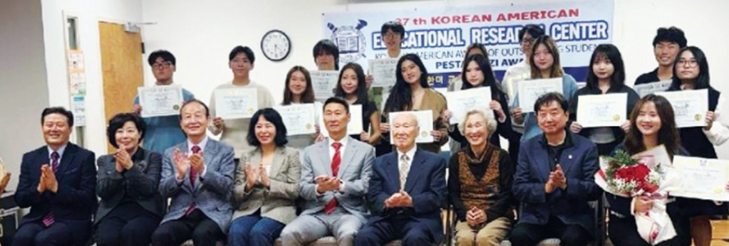 한미교육원(원장 차종원)이 주최한 제37회 페스탈로치 및 꿈나무 장학금 시상식이 지난 15일 열렸다. 이날 행사에서는 말보로 중·고등학교 한국어반의 이윤주 교사가 교육 공헌을 인정받아 페스탈로치상을 수상했다. 이어 에리카 김, 샤론 김, 이사벨 김, 김희락, 박세린, 앨리스 박, 손영아, 에이든 오, 이수빈, 레이첼 이, 이현서, 다나 정, 제이든 정, 제임스 정, 차호원, 브랜든 홍 등 총 16명의 학생에게 꿈나무상과 장학금이 전달됐다.