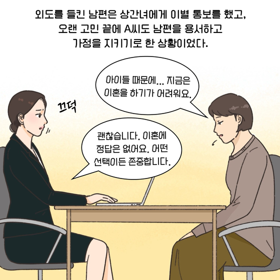 (※이 기사는 이혼 소송 과정에서 필요한 법률 지식을 웹툰 형식으로 이해하기 쉽게 제공할 목적으로 제작됐습니다. 실제 사례를 각색한 내용으로 언급되는 이름과 지명 등이 실제와 같은 경우가 있더라도 이는 우연에 의한 것임을 밝힙니다.)