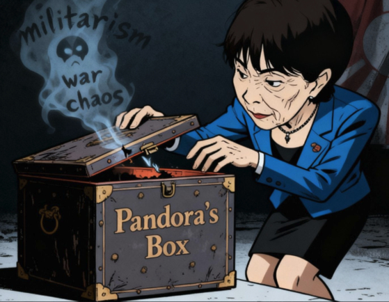 중국 관영방송 CGTN의 X 계정에 게시된 다카이치 총리를 그린 만화 일러스트. [사진 중국 관영방송 CGTN X 캡처]