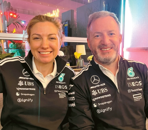 지난 21일 메르세데스팀의 브래들리 로드(사진 오른쪽) 최고커뮤니케이션책임자(CCO), 빅토리아 존슨 마케팅 오퍼레이션 디렉터를 단독 인터뷰했다. 이들은 팀의 성공을 가능하게 한 요소로 조직의 힘과 ‘원 팀(One Team)’ 문화를 꼽았다.