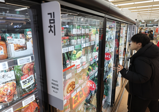 올해 김치 수출액이 역대 최대를 기록할 것으로 전망된다. 다만 수입액도 1년 만에 최대치를 경신해 무역 적자가 더 커질 수 있다. 24일 관세청에 따르면 올해 김치 누적 수출 금액은 전달 기준으로 1억3739만 달러(약 1950억원)로 작년 동기 대비 2% 늘었다. 김치 수입액은 1억5946만 달러(약 2260억원)로 작년 동기 대비 3.1% 증가했다. 사진은 24일 서울 시내 한 대형마트에 진열된 김치. [연합뉴스]