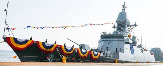 3600t급 최신예 호위함인 전남함(FFG-831) 진수식이 25일 오후 경남 고성군 SK오션플랜트에서 열렸다. 전남함은 강화된 대공·대잠 능력을 기반으로 대한민국 영해를 수호하는 주력 전투함으로 활약할 예정이다.