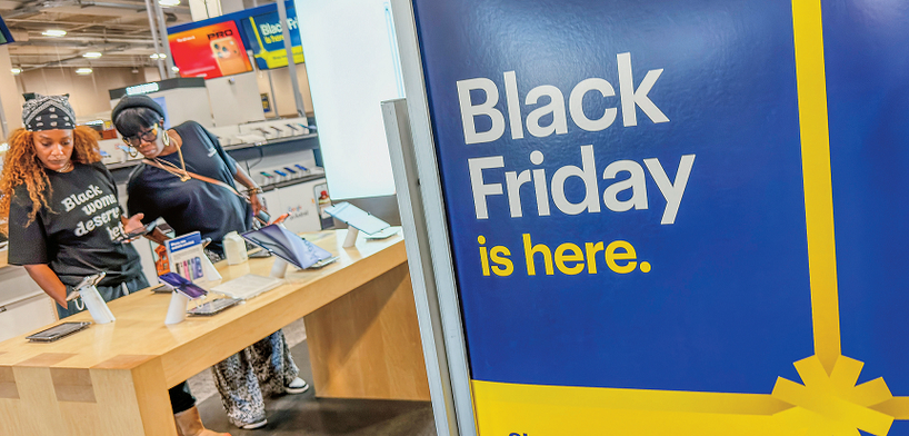 25일 블랙프라이데이 세일이 시작되면서 베스트바이 매장 곳곳에 할인 안내문이 붙고, 고객들이 제품을 직접 살펴보고 있다. 김상진 기자