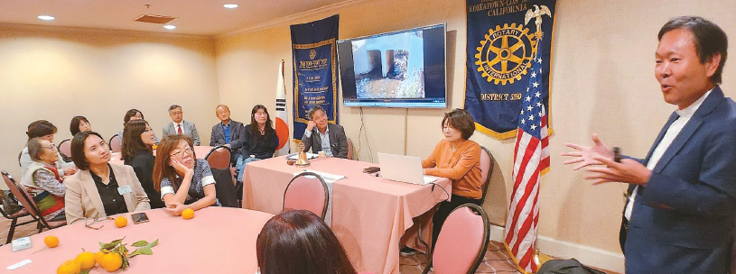 아프리카 구호 활동으로 알려진 황창연(맨 오른쪽) 신부가 지난 25일 LA 한인타운을 방문해 최근 진행 중인 잠비아 봉사활동을 소개했다. 황 신부는 이날 옥스포드 호텔에서 열린 코리아타운 로터리클럽 모임에서 회원 40여 명을 대상으로 현지 수로 사업의 경과와 지원 필요성을 설명했다.