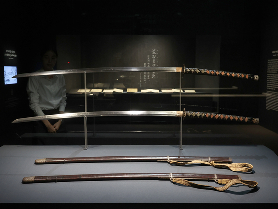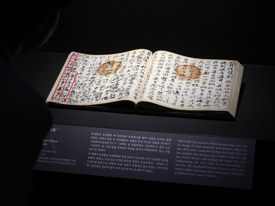 국립중앙박물관은 충무공 이순신 탄신 480주년 및 광복 80주년 기념특별전 ‘우리들의 이순신’을 28일부터 2026년 3월 3일까지 연다. 국보 6건 15점을 포함해 총 258건 369점의 전시품을 선보이는 사상 최대 규모의 이순신 전시다. 27일 열린 언론공개회에서 참석자들이 ‘이순신 장검’(위 사진)과 『징비록』을 살펴보고 있다. 이번 전시는 다음 달 4일까지 무료로 입장할 수 있다. [연합뉴스]