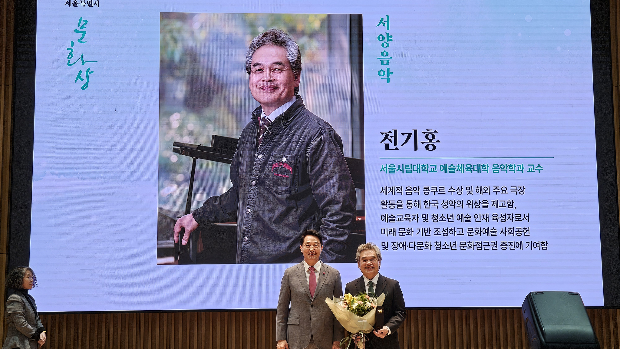 서울시립대학교(총장 원용걸)는 음악학과 전기홍 교수가 서울의 문화예술 발전에 기여한 공로를 인정받아 ‘제74회 서울특별시 문화상’ 서양음악 부문 수상자로 선정됐다고 밝혔다.