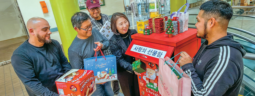 2일 LA 다운타운 자바시장에 ‘사랑의 선물함’이 설치됐다. 샌피드로패션협회(회장 폴 계)는 오는 20일까지 선물함을 운영하며 각종 생필품과 위생용품 기부를 받을 예정이다. 선물함은 샌피드로 홀세일 마트 에넥스 1층 로비에 마련됐다. 첫날에는 샌피드로패션마트협회가 베지밀 180박스를, 얼라이 언스머천드 서비스(대표 김용대)가 컵라면 150박스를 기부했다. 김상진 기자