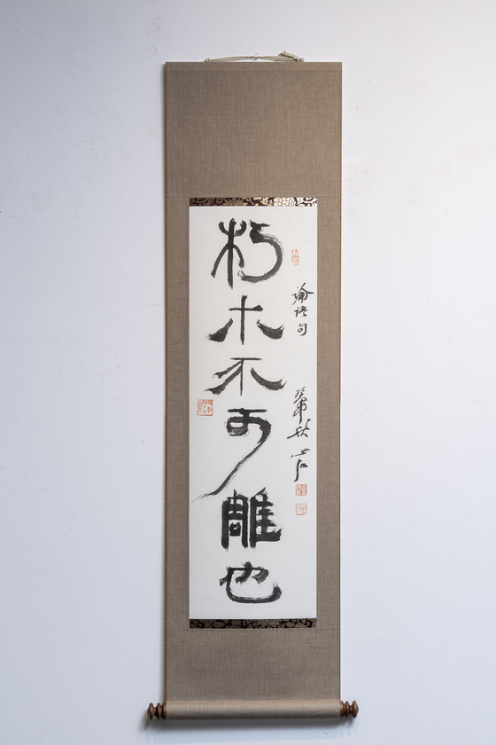 이번에 전시된 작품 중 50점도 『논어』 글귀다. 전시는 8일까지 열리며, 매일 오전 11시, 오후 3시에 그가 직접 안내한다. ‘이야기가 있는 서예전’이다. 전시장에서 그를 만나 왜 『논어』인지 물었다. “공자는 평범한 이들과 같이 살며, 그 평범 속에서 진리를 깨달아 평범한 말로 이야기했다. 그 평범함을 전해드리고 싶었다”는 답이 돌아왔다.