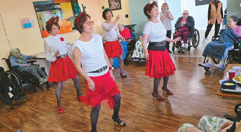 ANC 온누리교회의 인싱크대학 소속 라인댄스팀이 3일 라크라센터 헬스센터를 방문 라인댄스 공연을 가졌다. 인싱크대학은 시니어들을 위한 자기 계발 프로그램으로, 라인댄스 팀은 75세 이상으로 구성돼 있으며 연말을 맞아 각종 봉사활동을 펼치고 있다.