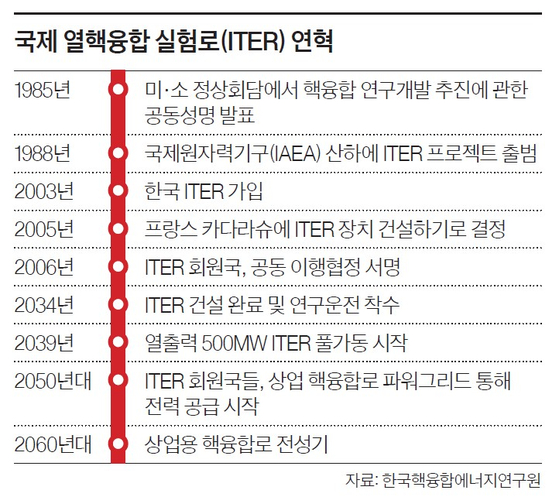 총 34조원, 2033년 완공 예정 프로젝트 현재 계획은 2033년에 시설이 완공될 예정이며, 총비용은 약 34조원이 들어갈 것이라고 한다. 그러나 국제적 협력 체계는 안정이 되었으며, 궁극적 성과는 예측할 수 없지만 인류 역사상 가장 거대하고 중요한 연구 프로젝트가 이루어지고 있는 것이다.