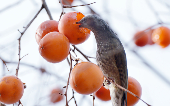 [사진] ‘겨울 만찬’ 홍시에 푹 빠진 직박구리