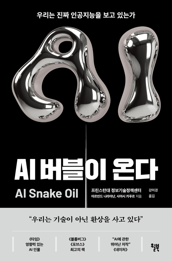 제목이 그래서 요즘 진행 중인 AI 거품 논쟁에 관한 책인 줄 알았다. 하지만 아니다. 책의 원제는 『AI Snake oil』, 즉 ‘뱀기름 AI’다. 뱀기름은 과거 미국에서 만병통치약 또는 자양강장제로 팔리던 가짜 약이다. 우리도 예전에 “이것이 무엇이냐~”로 호객하던 ‘뱀장수’들이 있었으니, 사람 사는 법은 동서양이 매한가지다. 그러니 번역본 제목을 ‘뱀장수 AI’나 ‘AI 만병통치약’ 정도로 했으면 나았겠다는 생각이다. 저자들이 서두에 밝히고 있듯 AI에 대한 과대평가나 부정적 영향력에 대해 알려 궁극적으로 AI 버블을 막는 것(대놓고 그렇게 말하지는 않았다)이 책의 목적인 까닭이다.