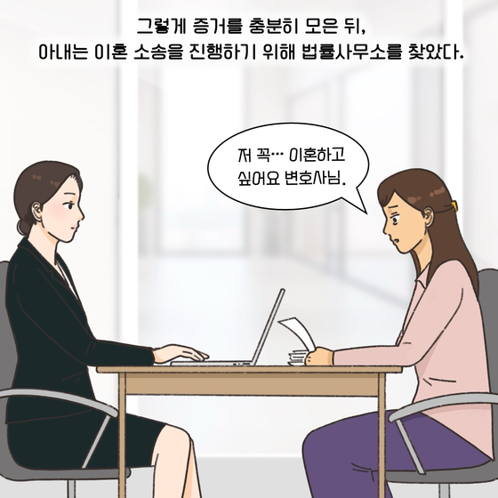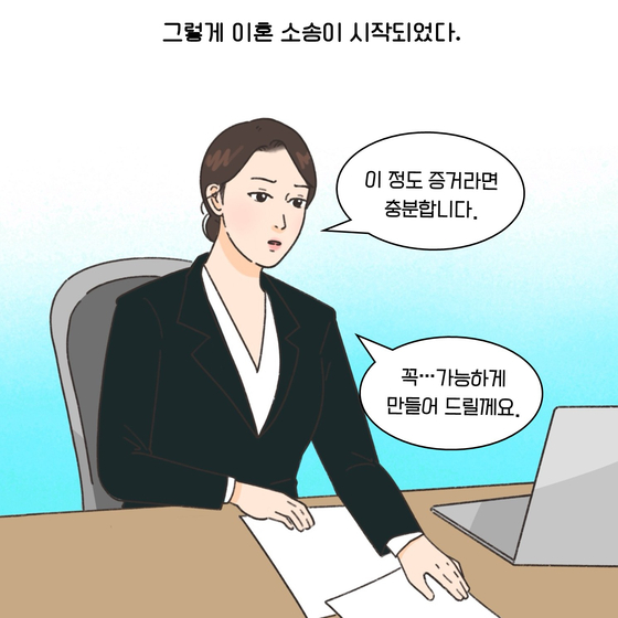 (※이 기사는 이혼 소송 과정에서 필요한 법률 지식을 웹툰 형식으로 이해하기 쉽게 제공할 목적으로 제작됐습니다. 실제 사례를 각색한 내용으로 언급되는 이름과 지명 등이 실제와 같은 경우가 있더라도 이는 우연에 의한 것임을 밝힙니다.)
