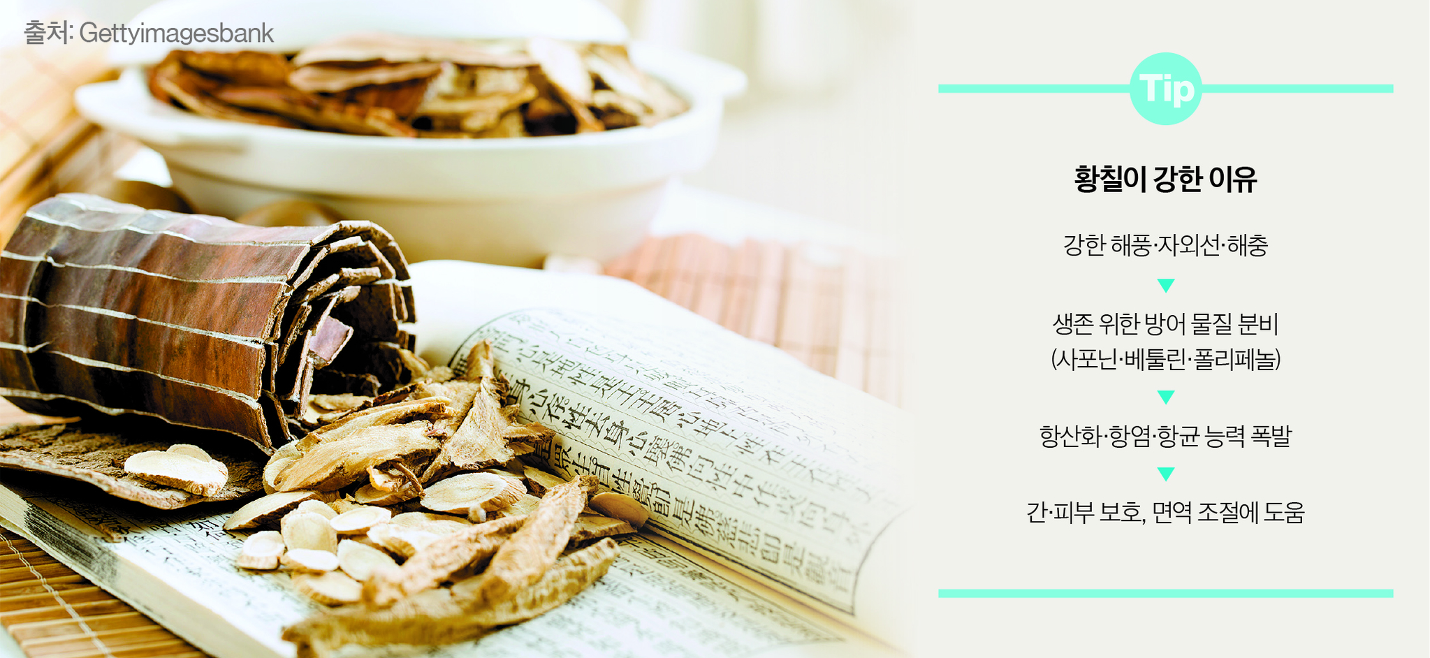 남해와 제주 해안가에는 우리나라의 고유종인 황칠나무가 자란다. 척박한 환경에서 살아남으며 면역적으로 단단한 성질을 품고 있는 게 특징이다. 황칠나무는 해풍과 강한 자외선, 해충, 곰팡이 등 끊임없이 밀려드는 스트레스 속에서 스스로를 지키기 위해 항산화·항염 물질을 대량 합성해낸다. 오늘날 건강학적으로 황칠을 재조명하는 배경이다.